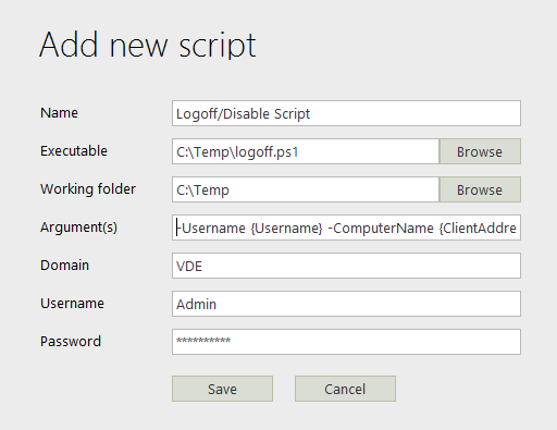 Remarque: Les types d'exécutables autorisés sont .bat, .exe ou .ps1 - Répertoire: (facultatif)