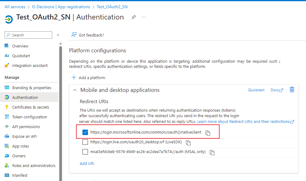 Vous êtes ici: Référence > Configuration des paramètres > Paramètres E-mail > Configurer OAuth2 pour votre propre application Microsoft