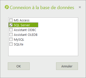 3. Cochez la case SQL Server et cliquez sur OK :