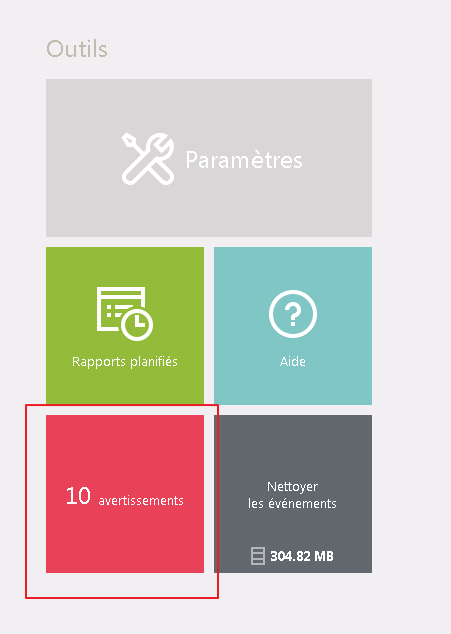 La tuile Avertissements